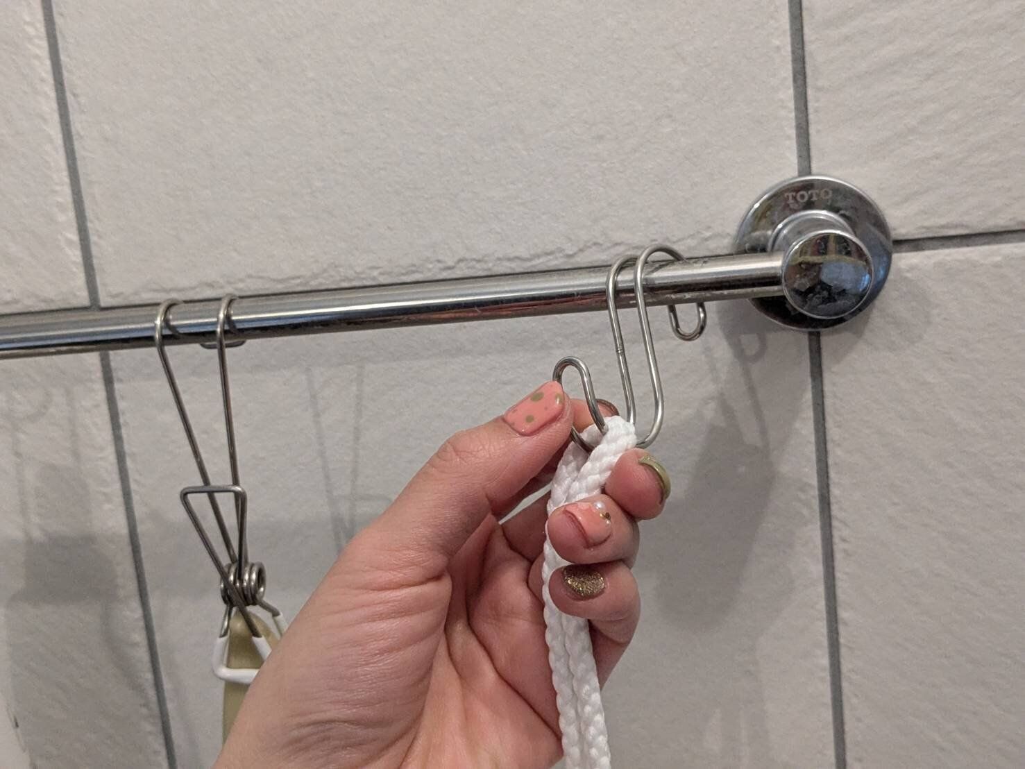 ひも付きのアイテムならば一般的なS字フックでもいいような気もしますが、引っ掛ける時に横ぶれしてイライラした経験はありませんか?この商品は2重になっているおかげで、横ぶれすることなくノンストレス。