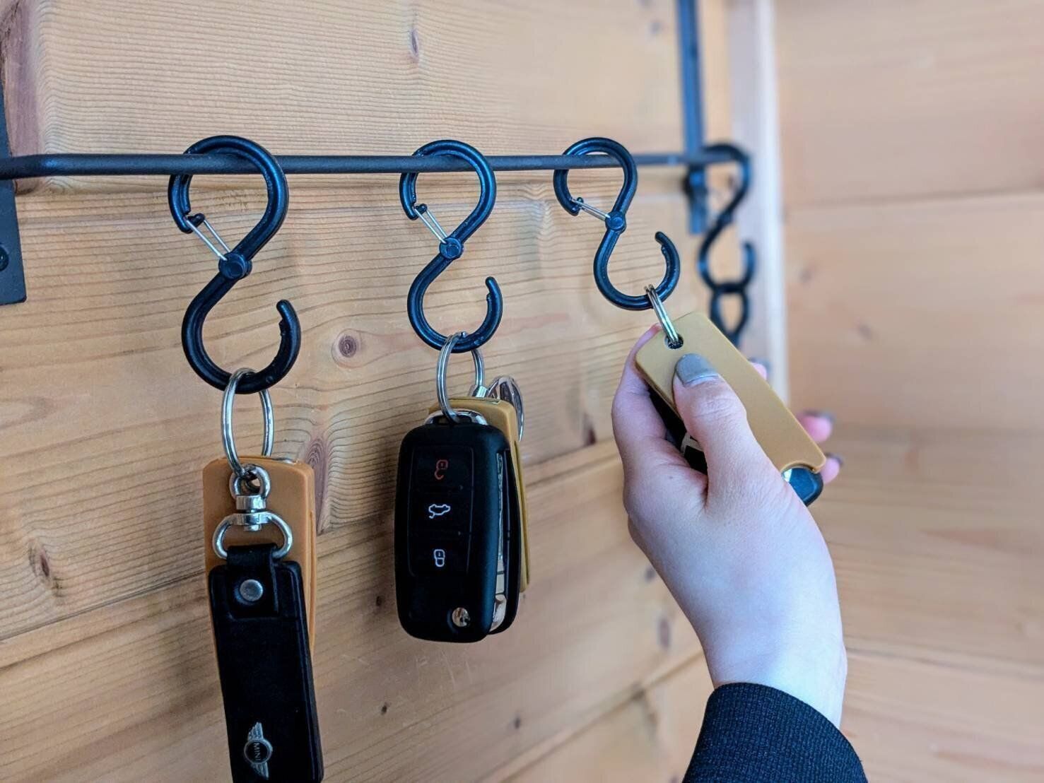 車や家の鍵を、玄関のフックに「かける収納」にしているご家庭も多いのではないでしょうか?確かに、パッとワンアクションで片づけ終わる便利な収納法ですが、いわゆる一般的な「S字フック」であれば、鍵と一緒にフックまで外れてしまうこともありますよね。