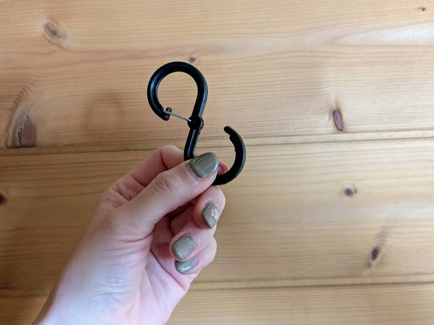 一般的なS字フックは先端が保護してあるモノが多いとはいえ、ベビーのいるご家庭の床にフックが落ちているのはやはり危険ですよね。子どもが使う場所、子どもの手の届く場所のフックを「ストッパー付き」に変えておくだけで、いくぶん安心できますよ。