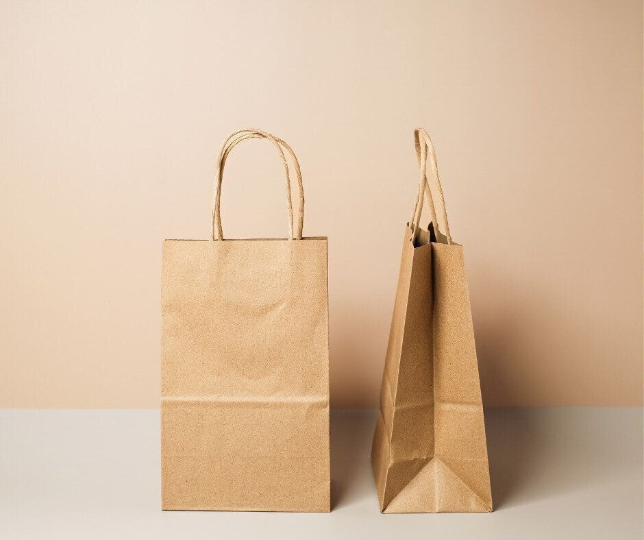 1.持ち手がついている紙袋の場合、ハサミで持ち手をカットします。