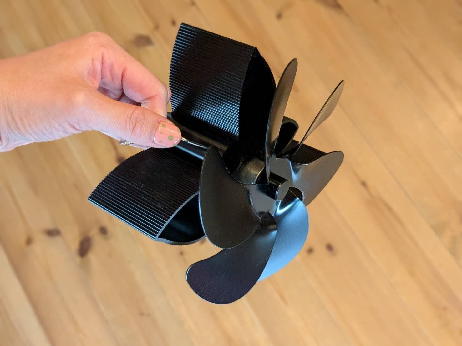 ストーブの熱伝導によりモーターが自動で回転するため、電池や電源は一切不要!置くだけ簡単、節電にもつながるアイテムなんです。わが家のように「薪ストーブ」に置くのはもちろん、「石油ストーブ」や「ガスストーブ」など、天板が熱くなるタイプのストーブ全般に使えますよ。