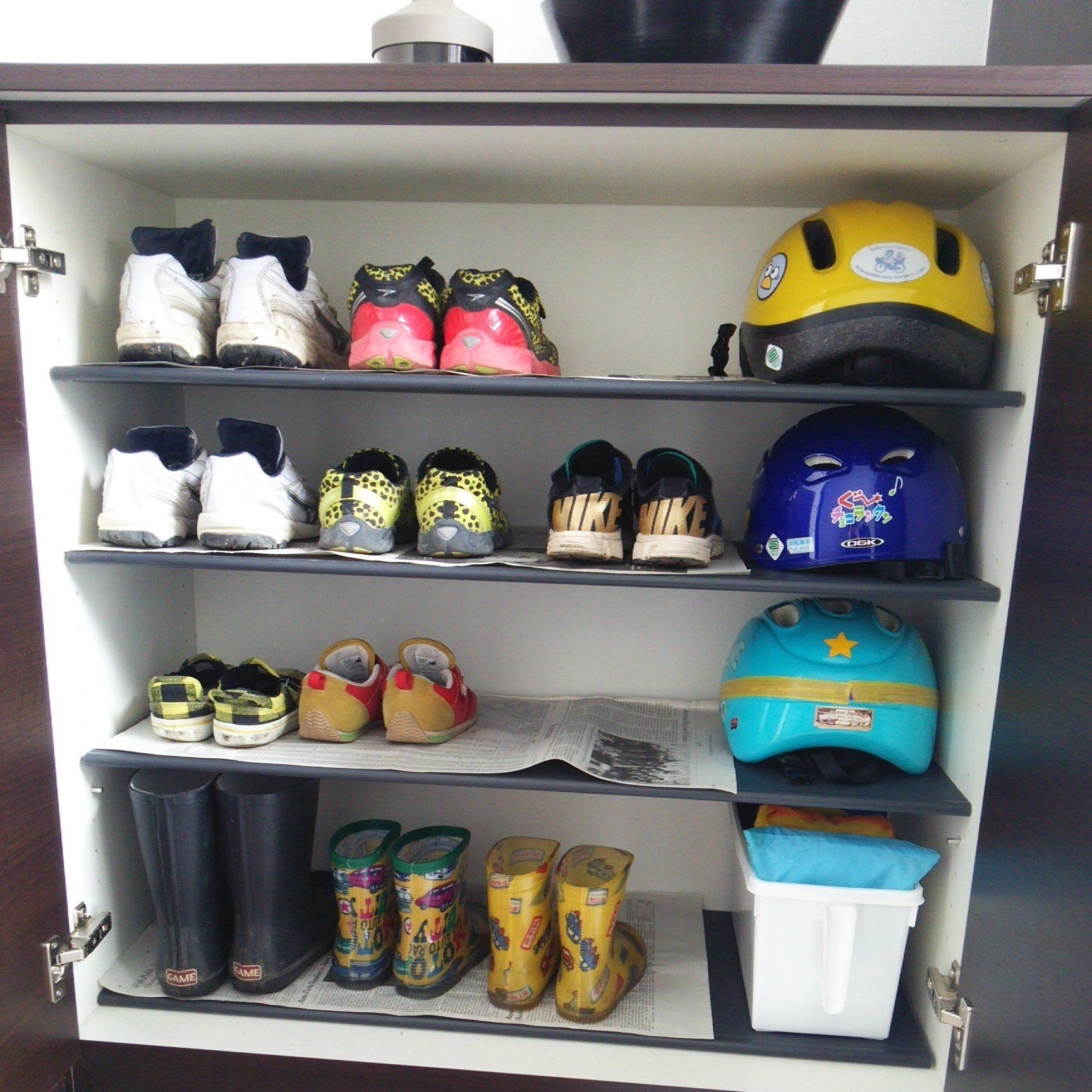 お出かけに使うヘルメットは靴といっしょに収納