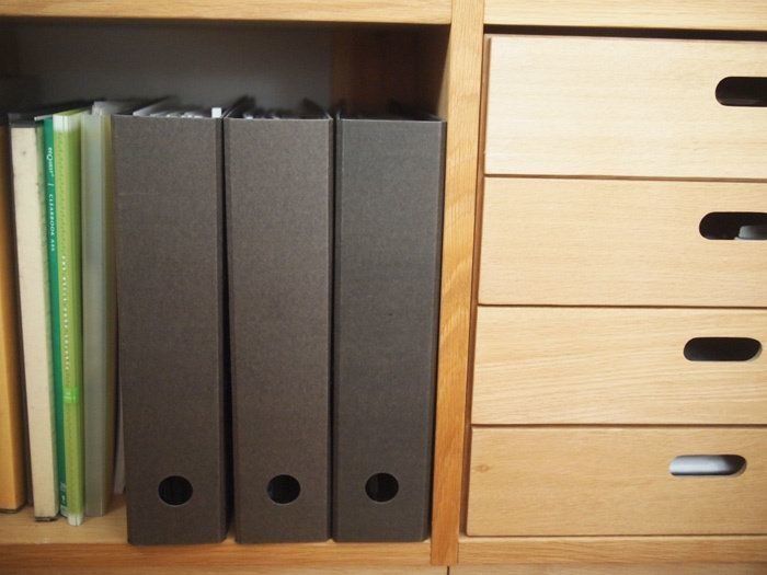こんな感じで本棚にピタッと収まるところもまた魅力。これでしばらくは説明書どこいった〜と格闘しなくてもすみそうです!説明書の収納はぜひとも「再生紙2穴ファイル・アーチ式」を採用してみてくださいね!