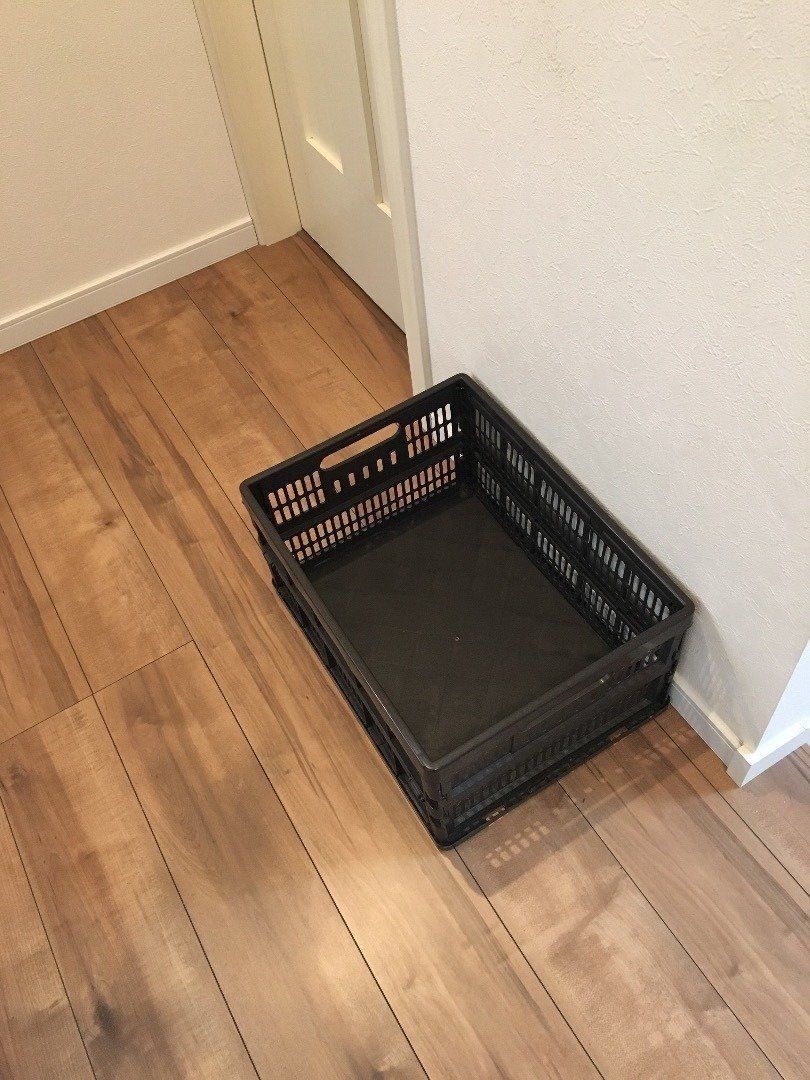 玄関やリビングなどが2階、洗濯機が1階にあるいとうりょうこさん宅。子どもたちが1階まで行くのを面倒くさがって、洋服類をリビングに放置しないように、玄関近くに洗濯カゴを置いているそうです。学校から帰ったら、玄関ですぐに服をぬいでカゴに入れられるので、脱ぎっぱなしを防げているそうですよ!