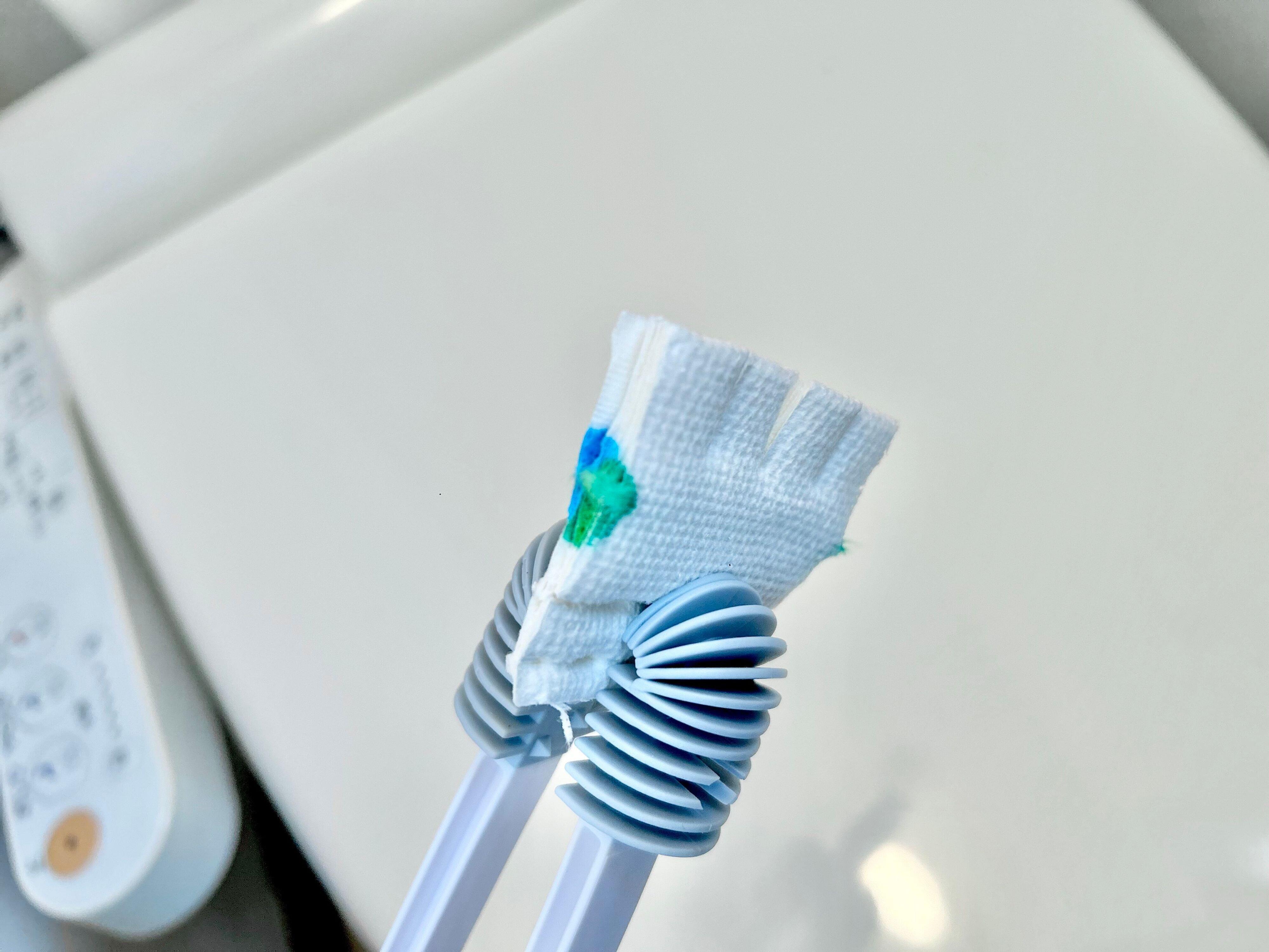 このトングがあればトイレットペーパーをはさめば、そのまま汚れを拭き取れます。ちょっと汚れただけでは使うのがもったいないと感じてしまうシートは使わずにすむのでサッと掃除ができます。