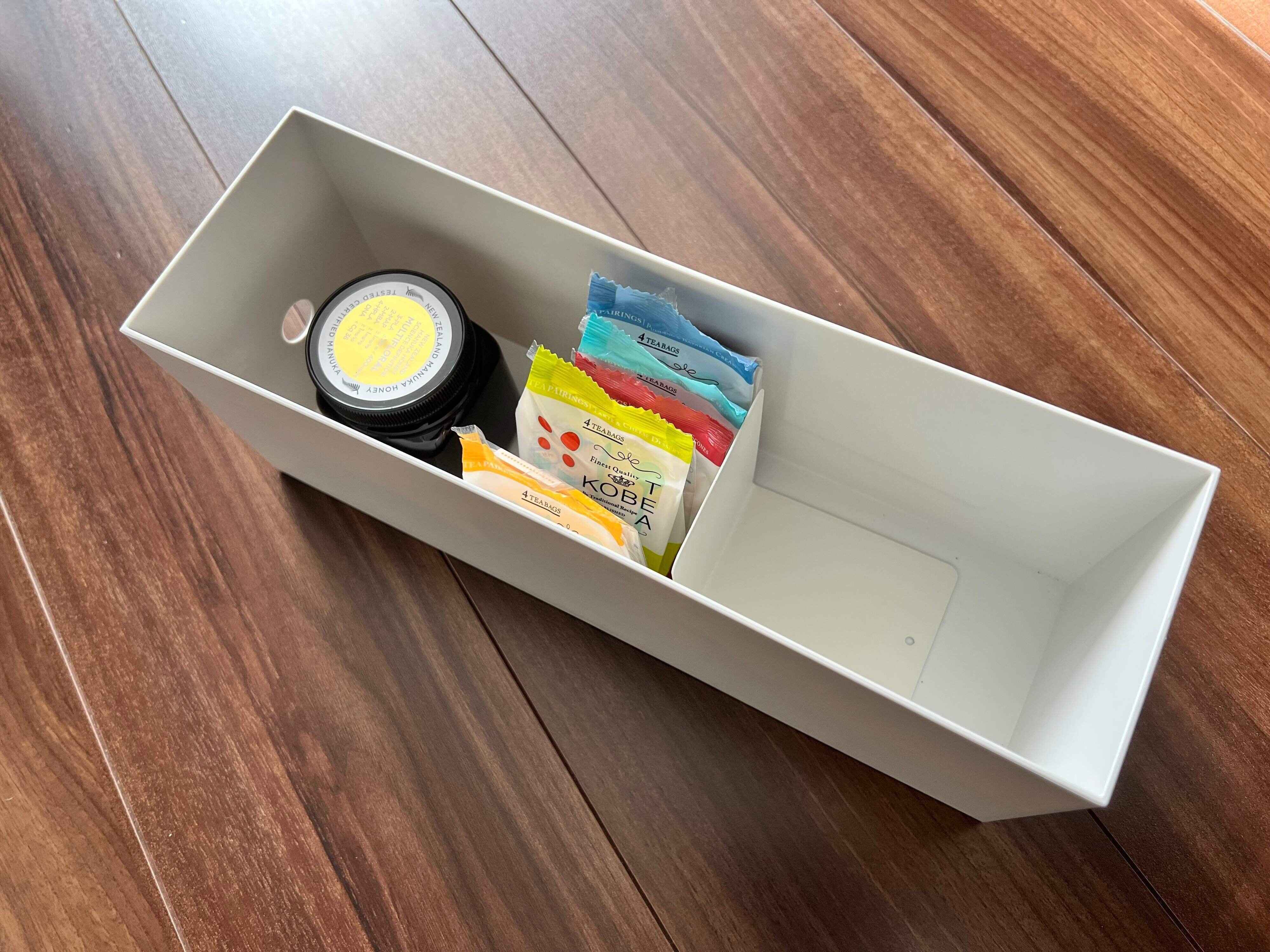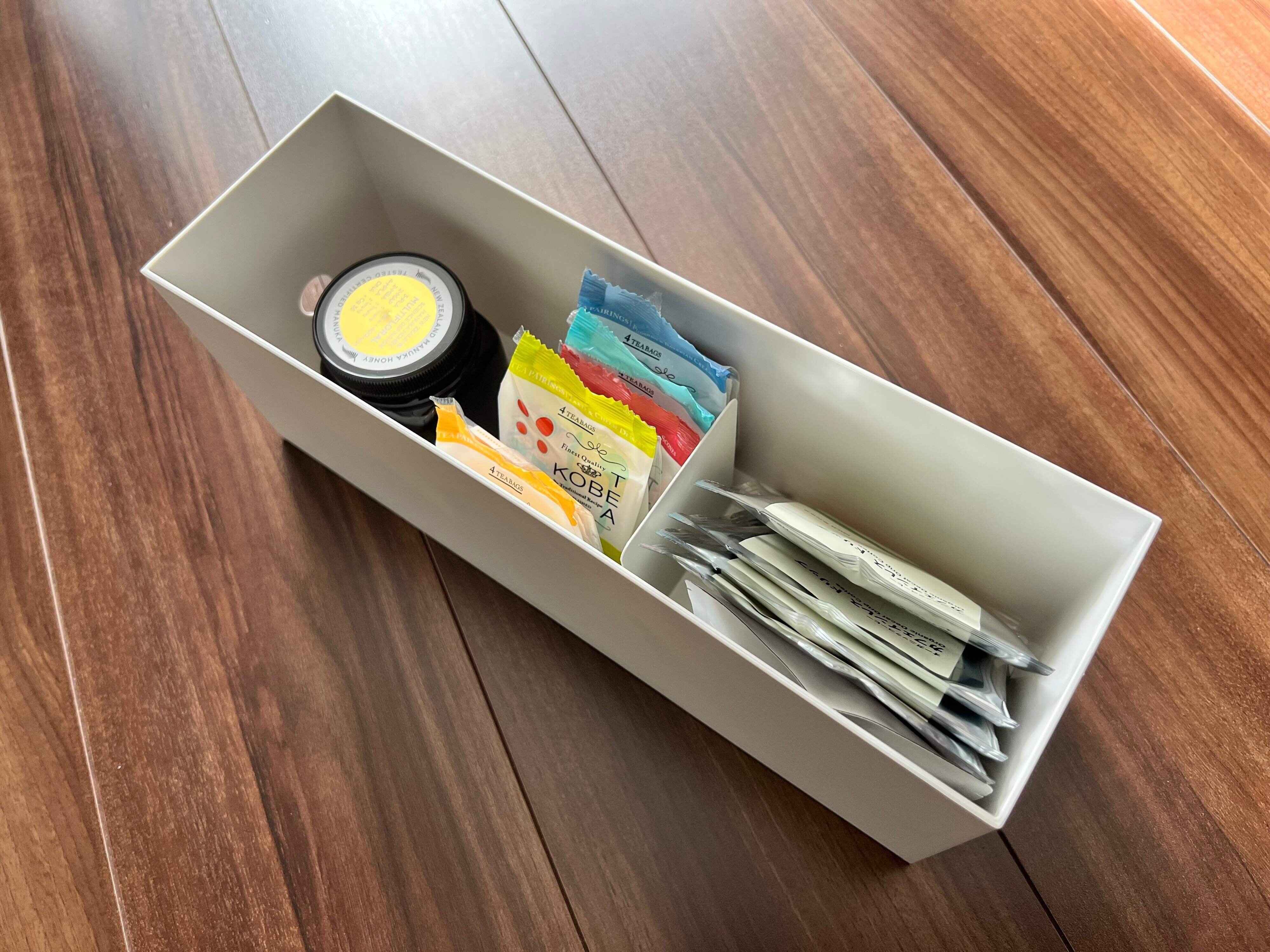 すると、収納ケースの中が仕切られて、カテゴリーが分かりやすくなります。どこに何があるのか分かると、取り出しやすくなりますね。
