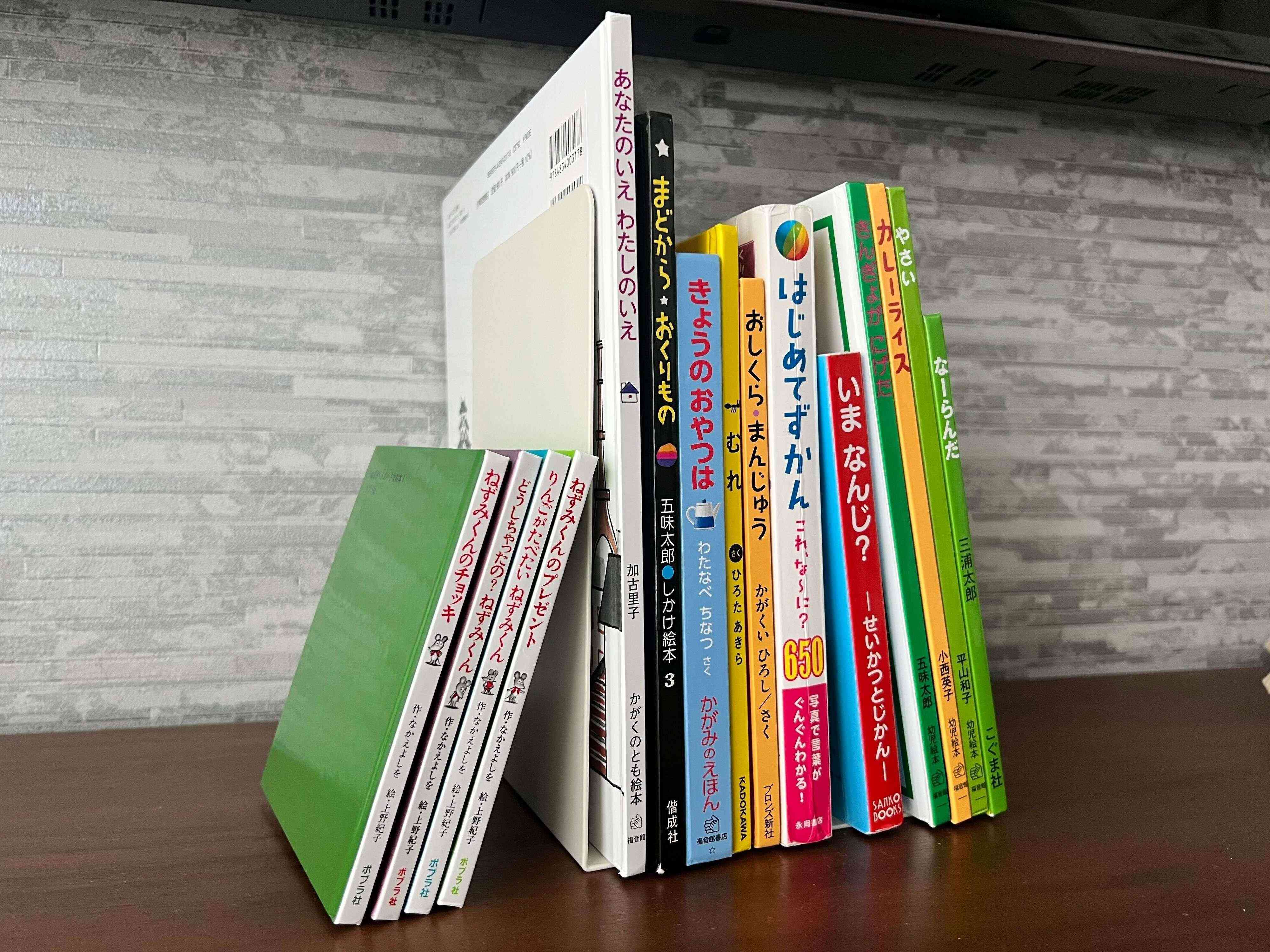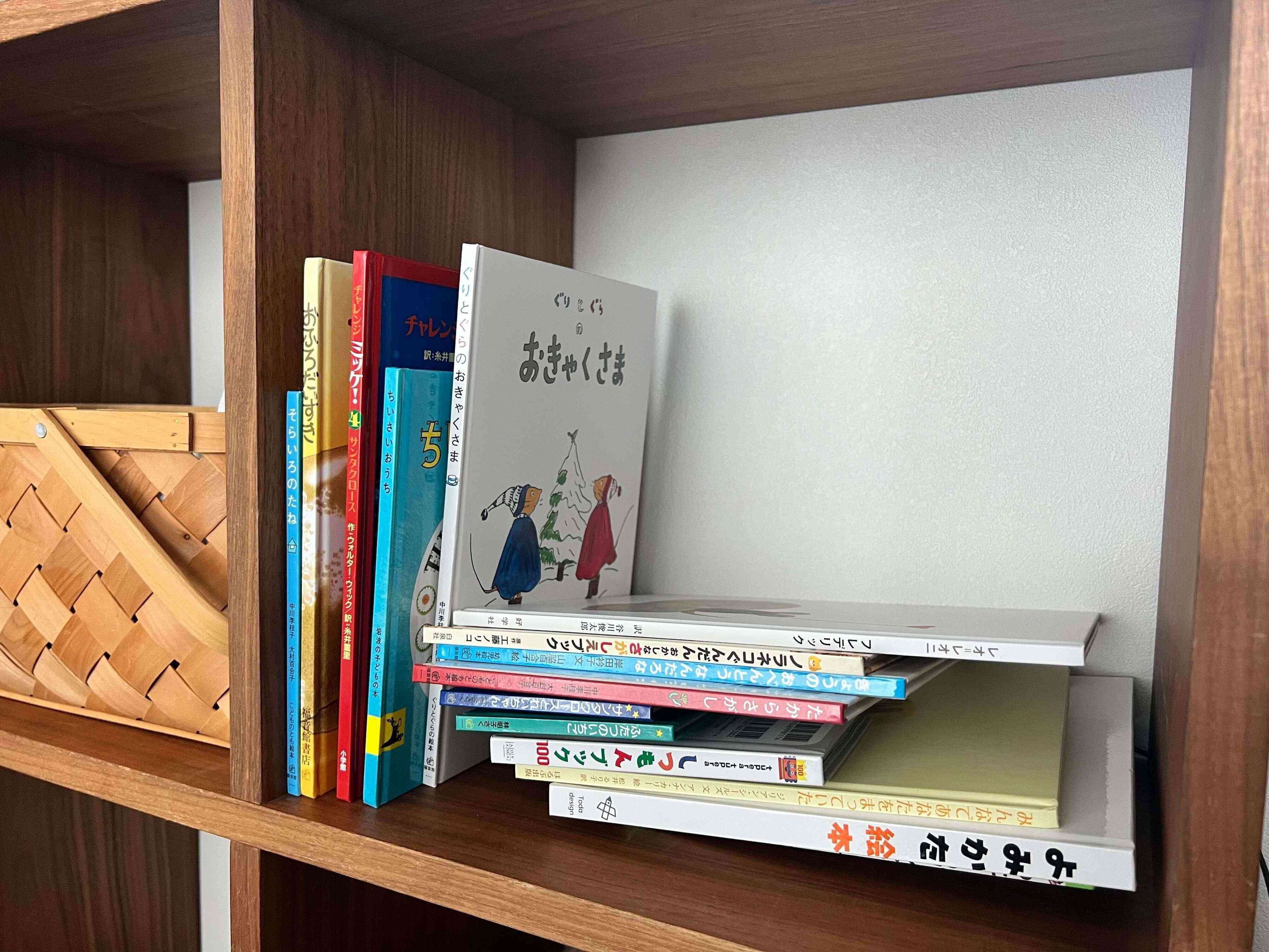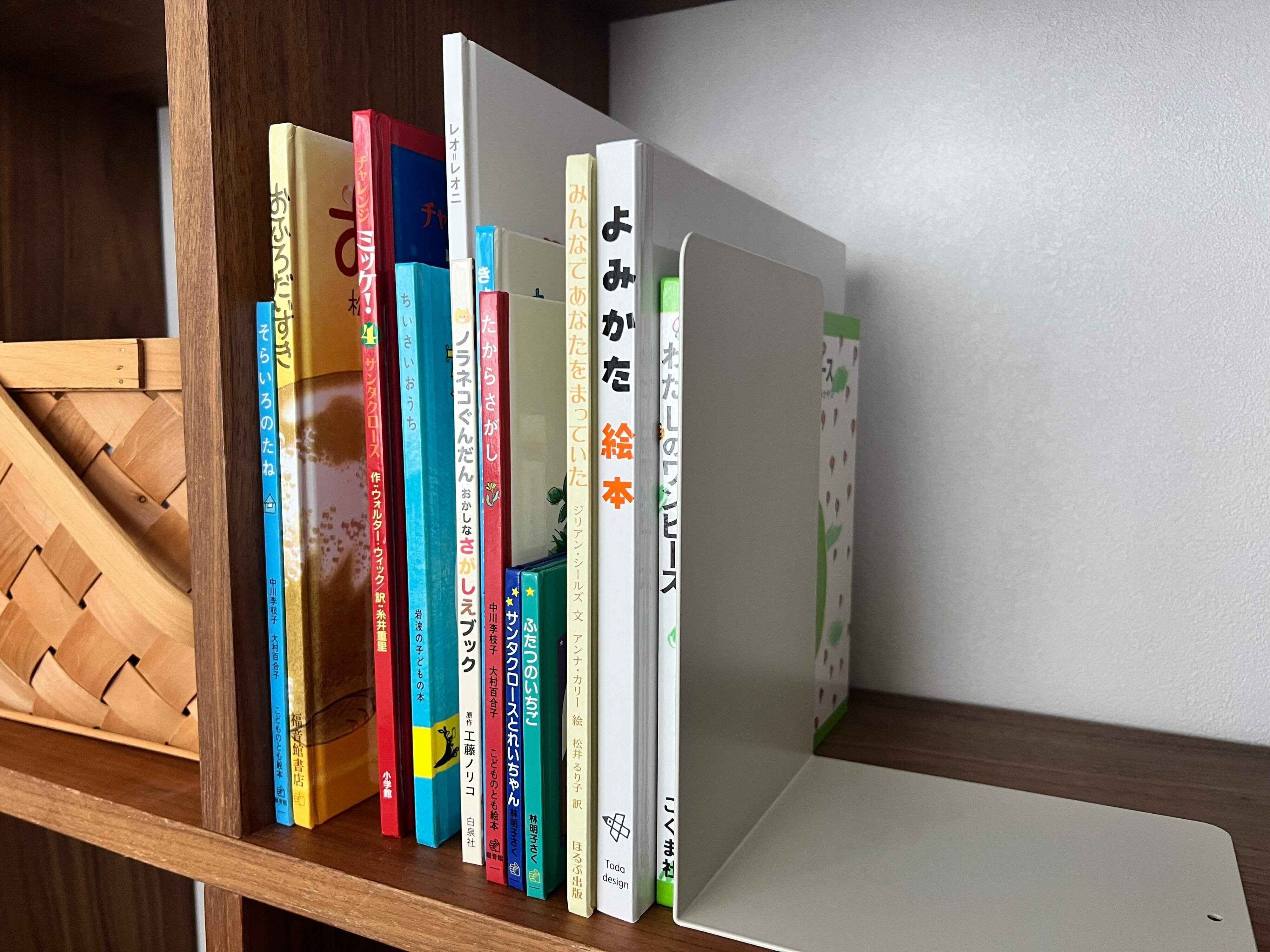 子どもは想定外の行動をするもの。絵本を読まずに、ただ出して遊ぶなんてこともしがちですが、ブックエンドがないと倒れてしまうんですよね。