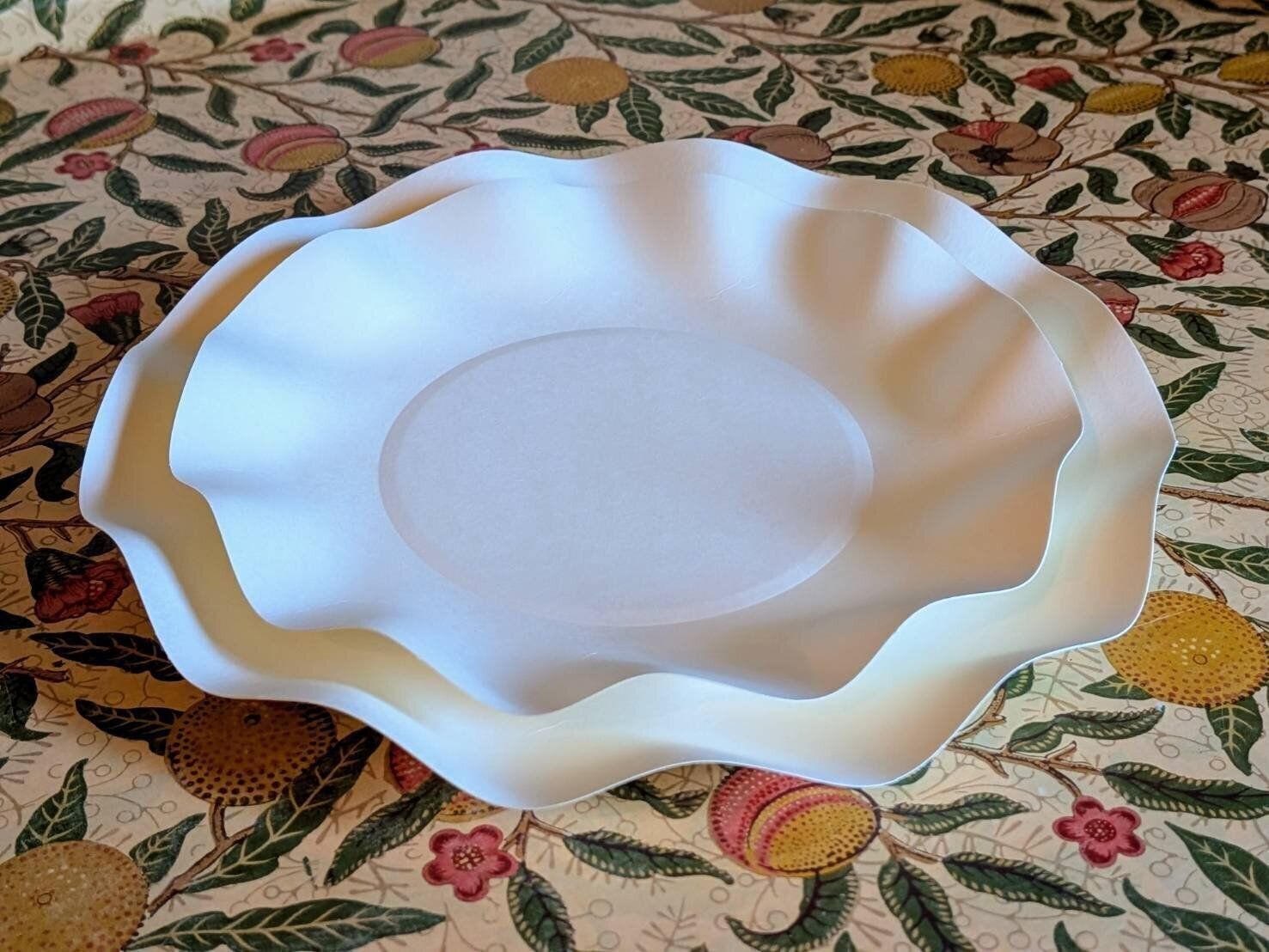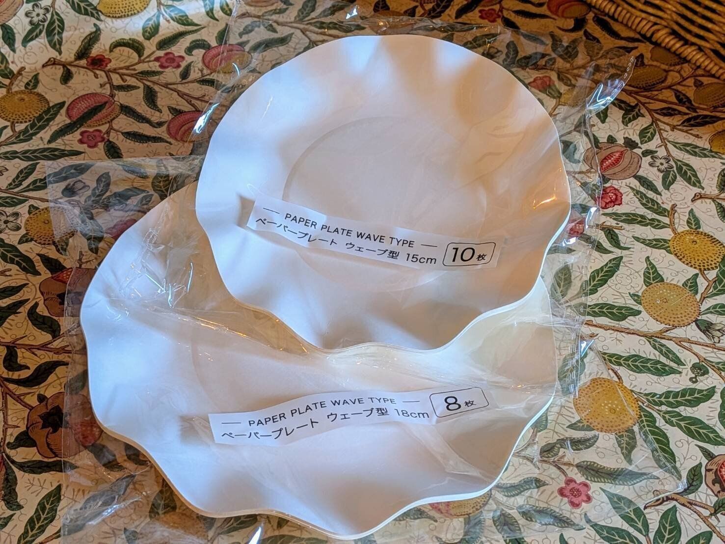 いわゆる紙皿と違いフチがウェーブ型になっているため、パッと見は紙皿に見えません。わが家にやって来るママ友達も「これ、紙皿なの?」と驚くほど。
