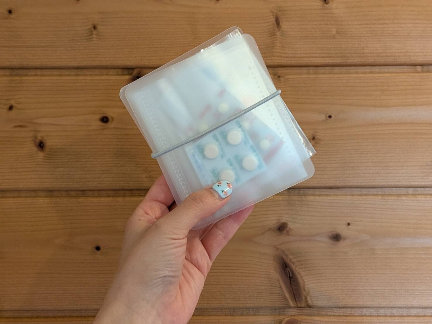 筆者が愛用しているのは10ポケットサイズですが、旅行や帰省などで使い捨てのスキンケア用品やシャンプーなどを入れたい場合には、より大容量の15ポケットもオススメです。15ポケットは、さっと開いて一覧できるカードファイルになっているのが特徴。こちらは自立はしないものの中身が一目瞭然なのが嬉しいポイントです。