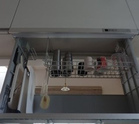 *よく使うコップ類は出し入れしやすいつり下げカゴに