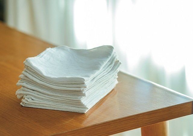 以前は「手拭き」「台拭き」「食器拭き」の3種類を用意していたけど、全部白ふきんにしたらまとめて漂白できて清潔だから、使い分ける必要なし。1種類なので数も厳選できました。