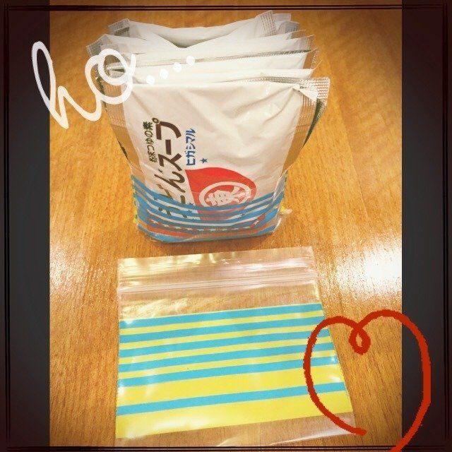 収納グッズを増やし過ぎないことを意識している若松美穂さん。収納をすっきりとさせるために、食品は外箱から取り出し、中身だけをジップ部分を切り取ったジップ袋にまとめて入れて、収納棚に立てて収納しているようです。中身だけで保管することで、外箱分のスペースを取らず、すっきりと収納できるのだといいます。