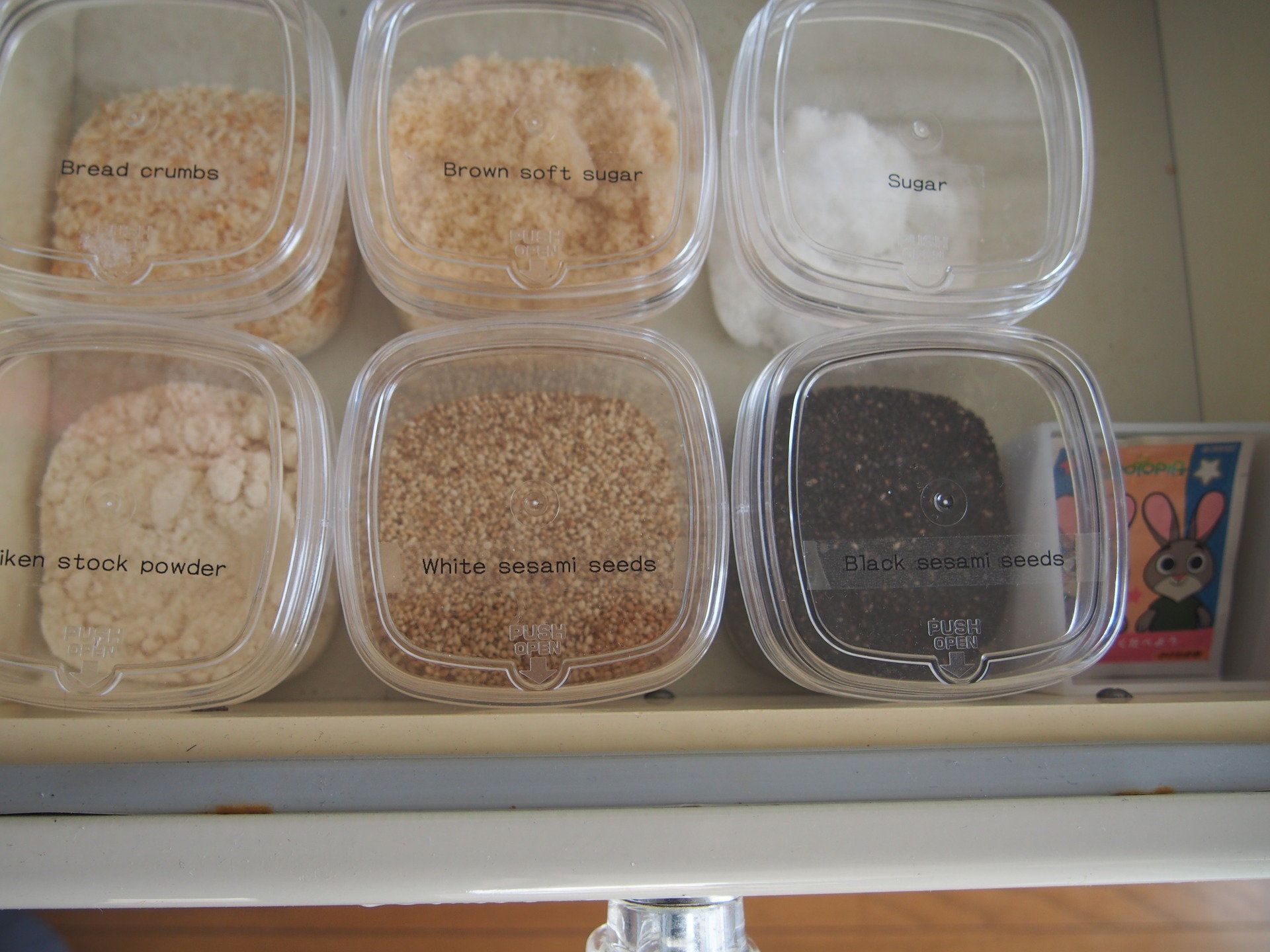 laureaさん宅では、100均の収納グッズがたくさん!キッチンの引き出しの中には、セリアのPUSHシリーズの調味入れが並んでいます。天袋内は、ワッツで購入したストレージボックスで整理。コード類の収納にはダイソーグッズが活躍しています。それぞれの100均店舗にお気に入りの商品があるそうです。