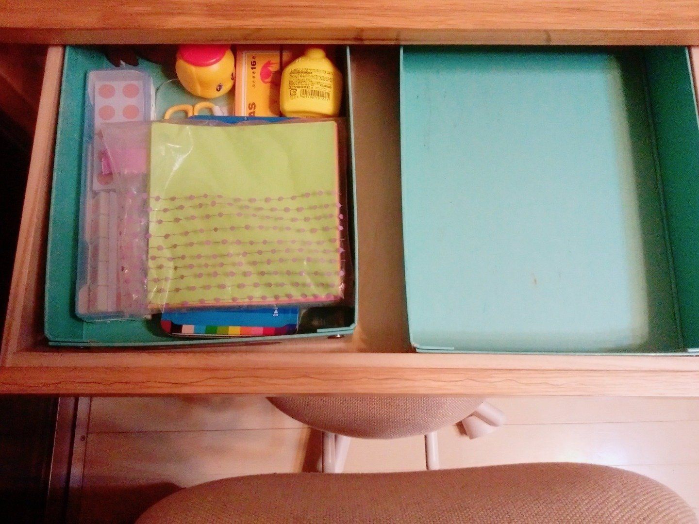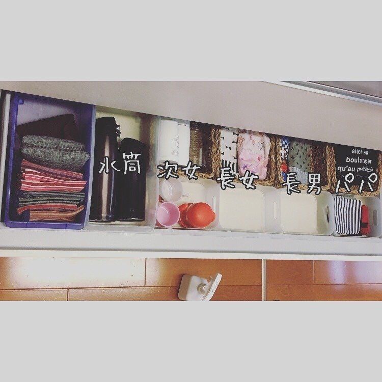 「片づけルールがないと散らかる」ということに気づいた近藤沙織さんは、まず食器棚を見直したそうです。シンク下の引き出しには給食セットや水筒など、子どもたちが学校で使うものを収納。場所を決め、子どもでも出し入れが簡単で、片づけやすい収納にすることで、「出しっぱなし」を回避しているとのこと。