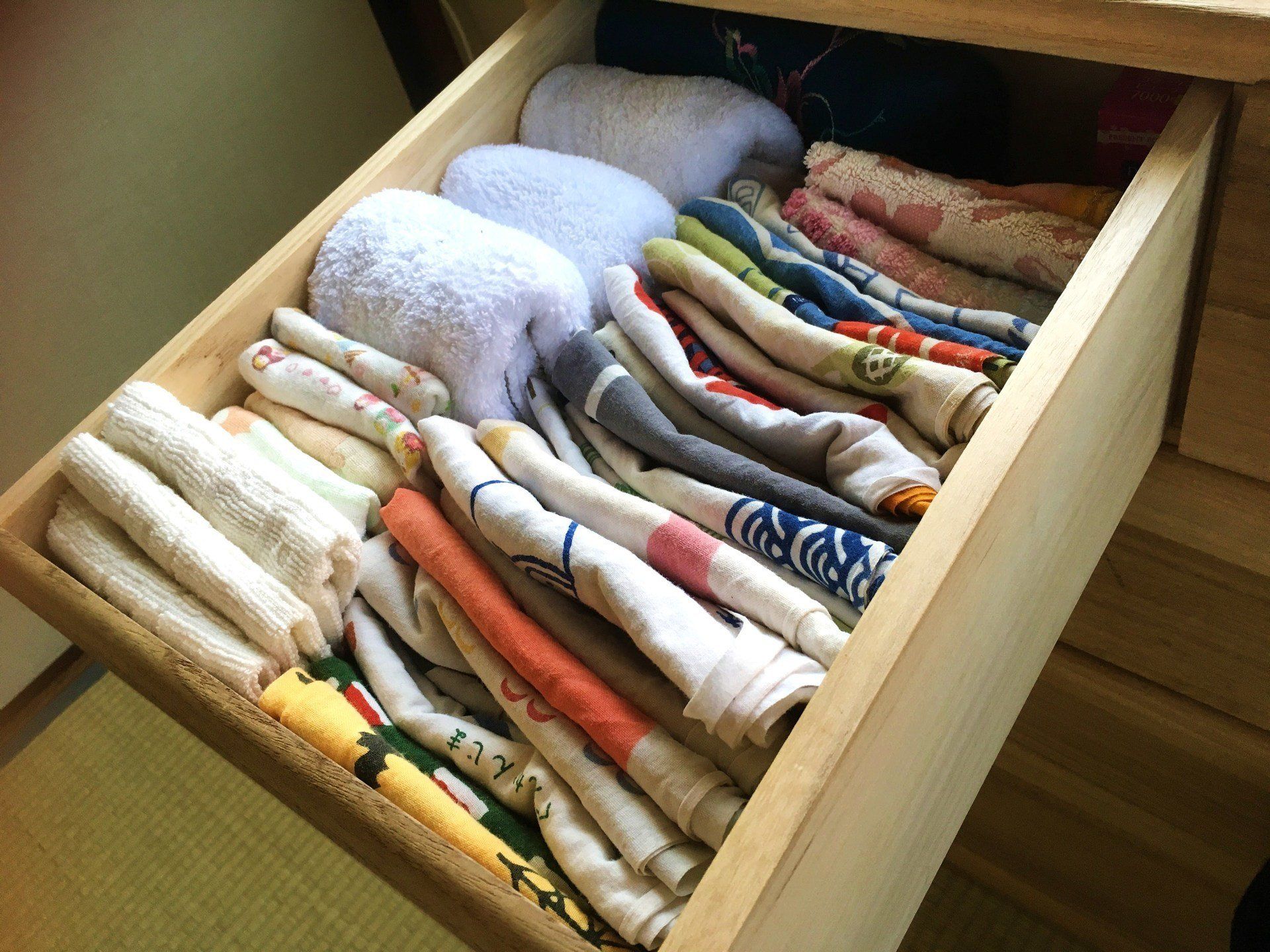 引き出しは「立てる」「見下ろす」「引き出しのキャパを守る」の3つを意識して収納するのがいいというばっきーさん。衣類は立てて収納し、引き出しの7~8割収納を心がければ、取り出しやすく、何が入っているかひと目でわかるようになり、片づけやすくなるのだとか。これなら服の「出しっぱなし」も回避できそうですね。
