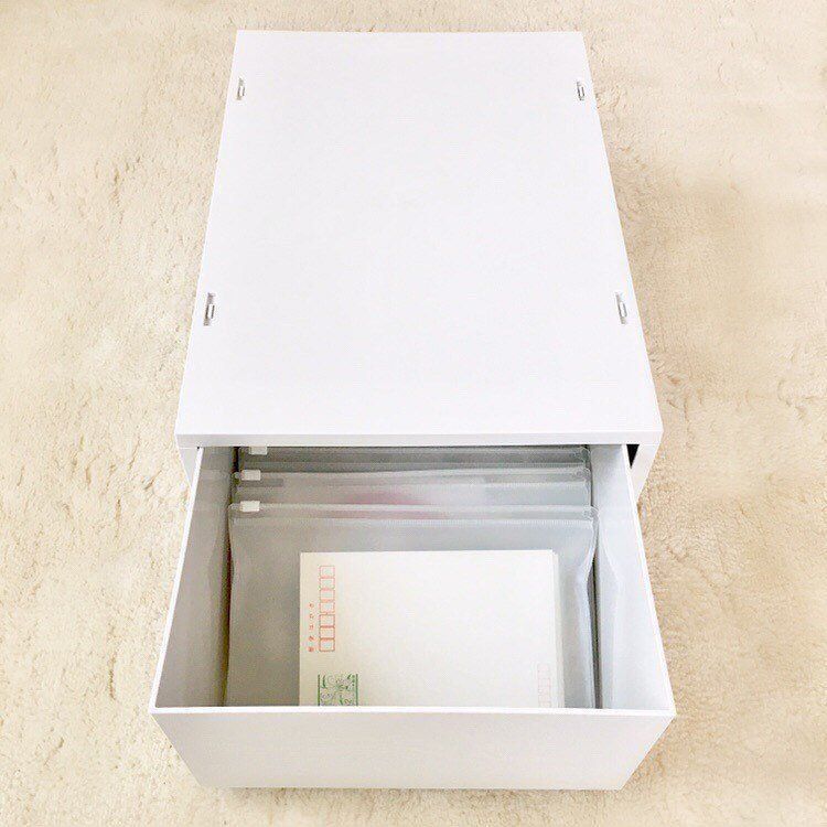 シンデレラフィットなうれしい収納がこちら!はがきや切手、保険証やお薬手帳など、こまごまとしたアイテムを入れている無印良品のファスナーつきケースが、引き出し式のポリプロピレンケースにぴったり収まるそう。よく使うアイテムこそ取り出しやすい収納が◎。