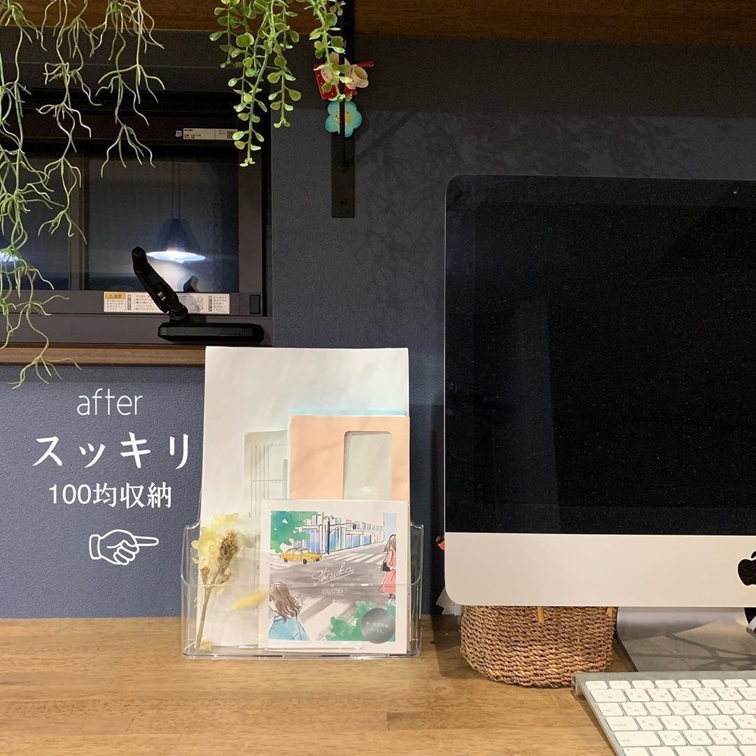 請求書や学校の出欠関連など、散乱しがちですよね。それらを、100均で購入した書類スタンドに収納しているmaiko.sinig.iさん。引き出しにしまうと忘れてしまうことがあるので、クリアタイプのスタンドで見えるスッキリ収納をしています。