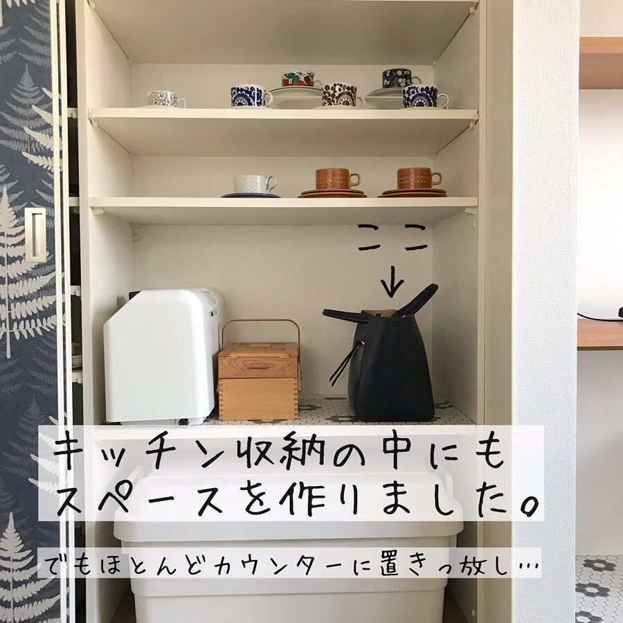 rina_na444さんは散らかりやすいリビングの戸棚などを、定期的に断捨離しています。ものを少なめにして、整理整頓がしやすい環境を意識。収納グッズなどもあえて購入はせず、必要なものだけで生活をするようにしています。