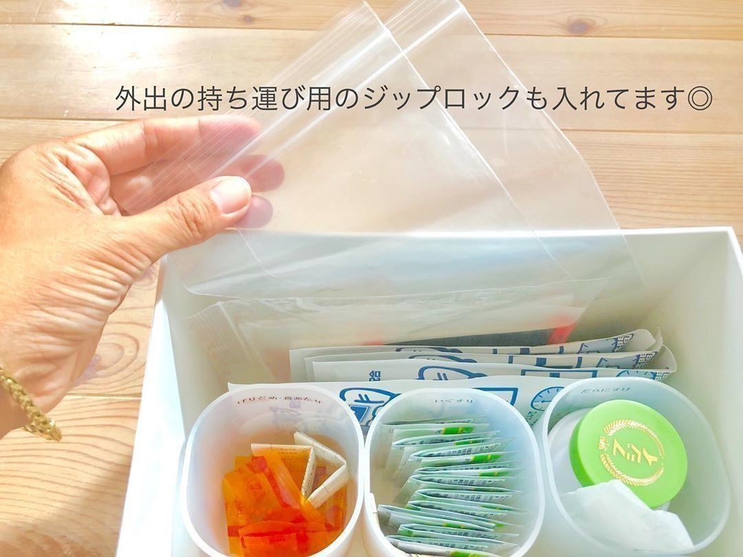 外出時の持ち出し用ジッパーつきポリ袋も同じ場所に保管!