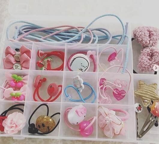 どんどん増えていく女の子のヘアアクセサリー。こちらも「SIKIRI」シリーズを使った収納アイデア。それぞれが居心地よさそうにおさまっているのがわかりますね。使いやすく、お片づけもしやすい。子どもたちの宝箱になりそうです。