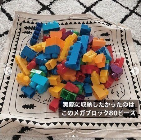 こまごましたおもちゃを片づけるのはひと苦労ですが、3COINSの巾着マットがあれば一瞬で片づけ終了!マットの紐をひっぱるだけで、巾着のようにおもちゃを包み込んでくれます。広げておくとプレイマットとしても楽しめる、一石二鳥のアイテム活用例です。