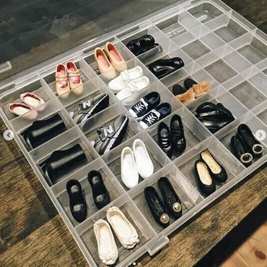 大人も子どもも大好きなリカちゃん人形。たくさんある小物の収納に苦労されているかたも多いはず。こちらも「SIKIRI」シリーズで、お人形の靴を美しく収納しました。紛失しがちな小さな靴も、これなら安心ですね。