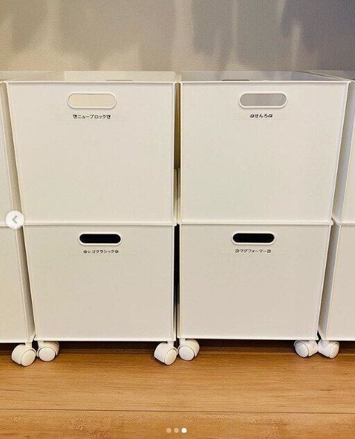 ここからは、インスタグラムで見つけた、すてきなおもちゃ収納実例を一挙公開!どれもマネしたい、タメになるものばかり。ぜひ参考にしてみてくださいね。
