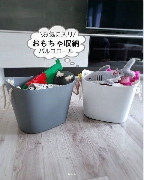 デザイン性が高くカラバリも豊富なバルコロールなら、ぬいぐるみなどのかさばりがちなおもちゃもおしゃれに収納してくれます。持ち手がついているので持ち運びもしやすく、お部屋に出しっぱなしにしても、お部屋のインテリアを邪魔しないのでおすすめです。