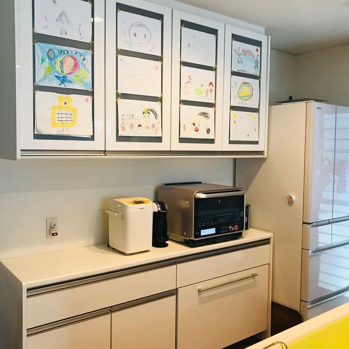 こちらは収納ボックスをきれいに活用している例です。ホワイトとブルーグレーのボックスがシンプルでおしゃれですね。ボックスに貼られているラベルはひらがなとイラスト。イラストが入っていれば、字がまだ読めない小さな子どもも、どこに何が入っているかわかります。自分でお片づけする練習にもなりますね。