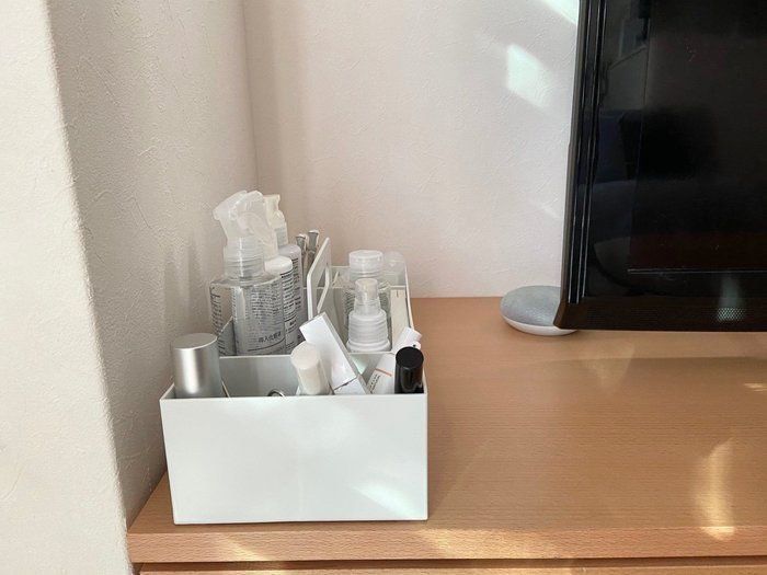 kaehalonさんが散らかったテレビボード収納におすすめするのは、無印良品の収納キャリーボックス!キャリーボックスなら急な来客時もボックスごと持ち運びができます。ボックス内でグルーピングし、グルーピングできないものは置かない、ボックスに入りきるまでが上限と決めておけば、キレイをキープできるといいます。