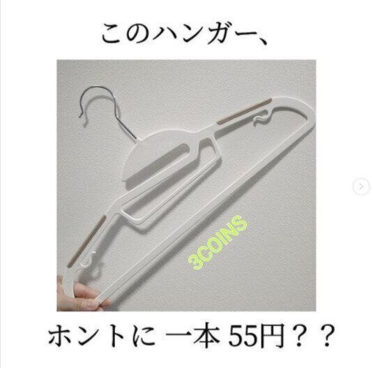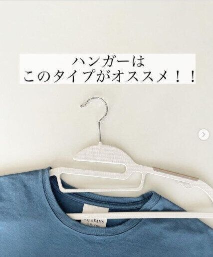 こちらは3COINSのハンガー。切れ込みがあるので、Tシャツなどをハンガーにかけるときも首元が伸びることがありません。洗濯物を干すときにも便利ですね。