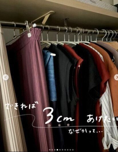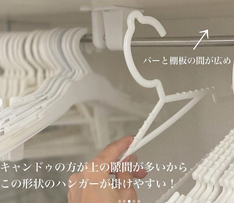 便利なハンガー収納はついついたくさんかけてしまいがち。でも、たくさんかけ過ぎると、どこに何を入れたかわからなくなってしまう場合も。できれば3cmほど間を開けることで、取り出しやすく、見つけやすい収納にすることができますよ。
