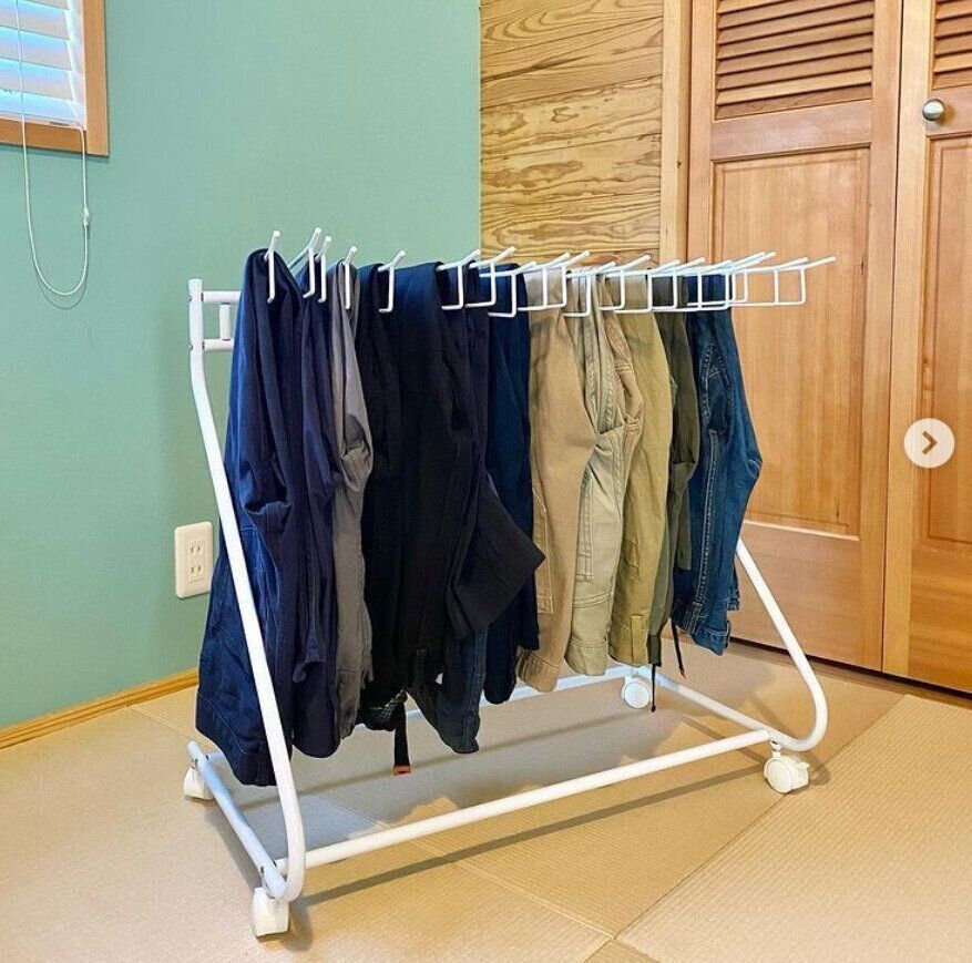 また、トップスやボトムスなど種類ごとにハンガーを変えれば、型崩れもしにくくおすすめです。「家にクローゼットや押し入れがない!」という人は、ぜひ試してみてくださいね。