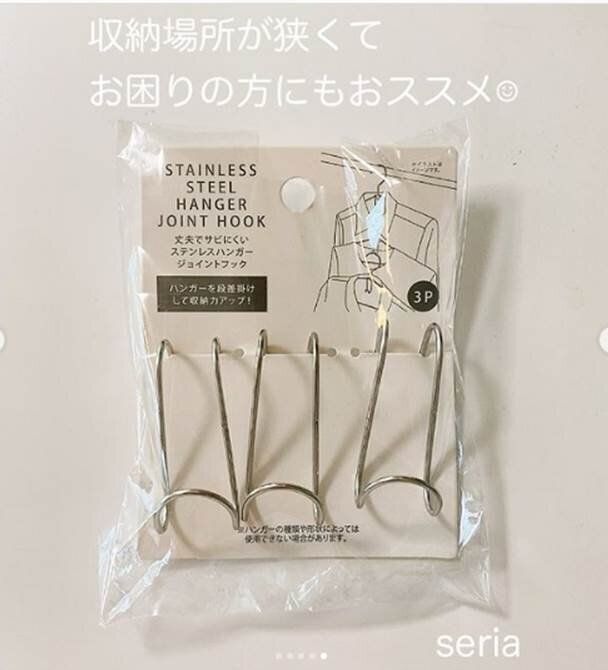 こちらはセリアの110円アイテム、「ステンレスハンガージョイントフック」です。