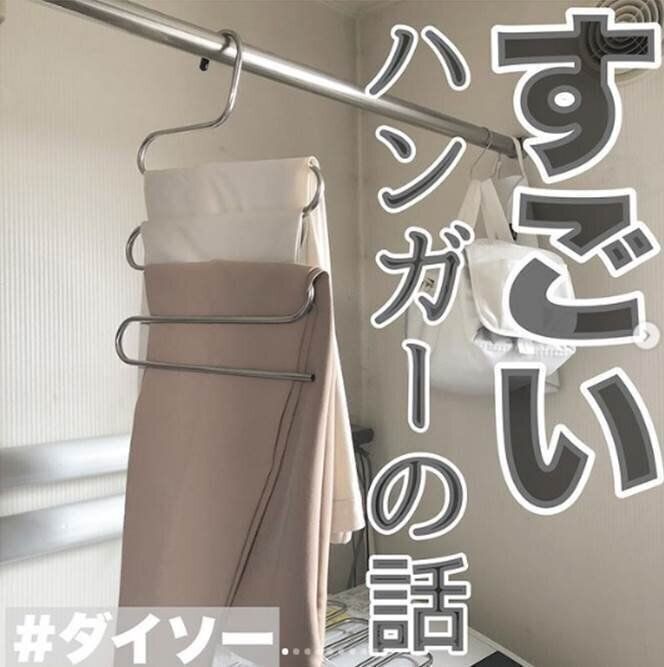 洗濯物を干すスペースの有効活用には、ダイソーで買える「省スペースハンガー」がぴったり。急いで干したいとき、取り込みたいときの効率アップにつながりそうですね。同じ場所にしまうものをまとめて干しておくのもよいかもしれません。