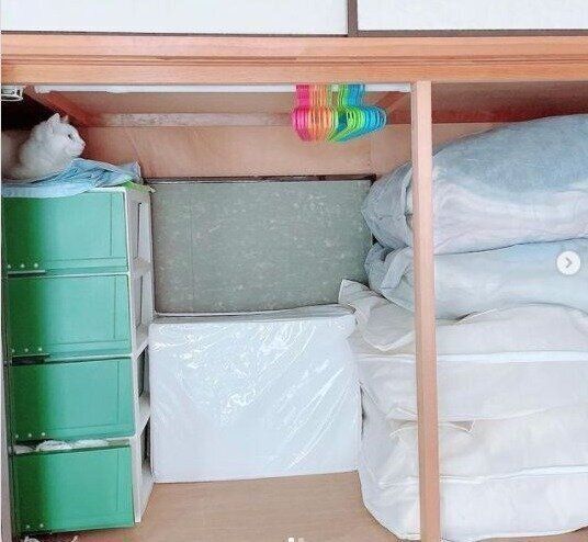 奥行のある押し入れも突っ張り棒でハンガースペースになる