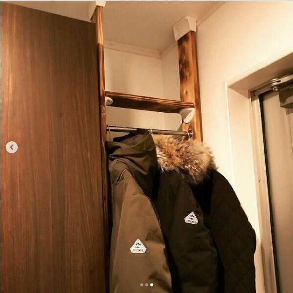 玄関や部屋のデッドスペースにDIYでハンガーポールを取りつければかさばりがちなアウター類をすっきりかけておく場所に大変身します。ラブリコなどのDIYアイテムを活用すれば壁を傷つけずつくれるので賃貸でも安心です。