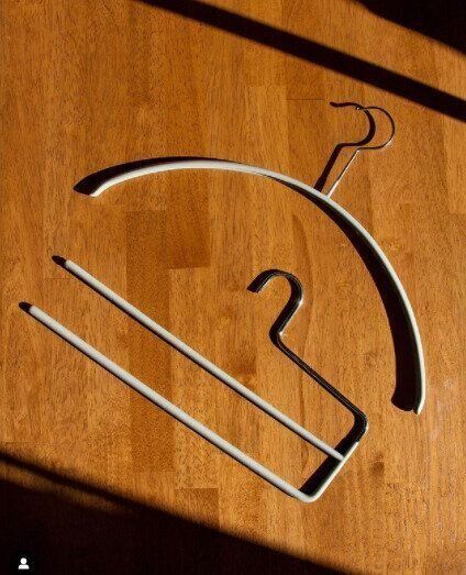 見た目がおしゃれなハンガーはたくさんありますが、こちらの首の部分が切れていているハンガーは洋服をかけるときに伸ばさずにかけることができます。Tシャツやトレーナーなどをハンガーにかけるとき、首の部分が伸びないのでプチストレス解消ですね。