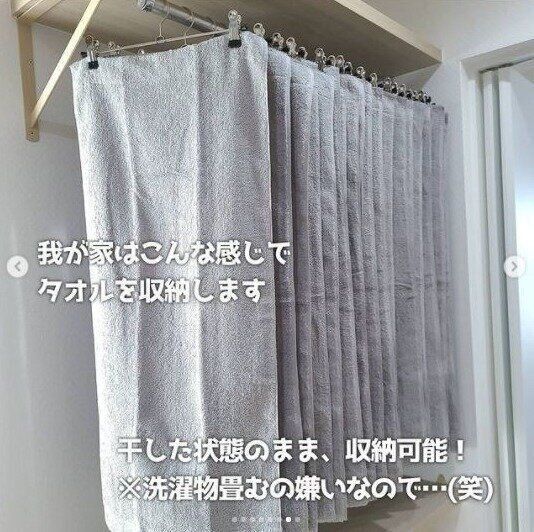 こちらは大人気のマワハンガーでかける収納を実践している例です。タオルや靴下は洗濯したらマワハンガーにかけて干し、そのまま収納!たたむ手間が省けるので楽ちんですね!