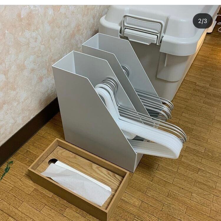 @kanat_ahomeさんは、無印良品の「スチロール仕切りスタンド」にハンガーを収納されているそう!「大サイズは幅が広いので、出し入れにもゆとりがあるからいい!」とのことで、出し入れがスムーズなってストレスが解消されそうです。一目見てハンガーの種類がわかりやすいのも素敵ですね。