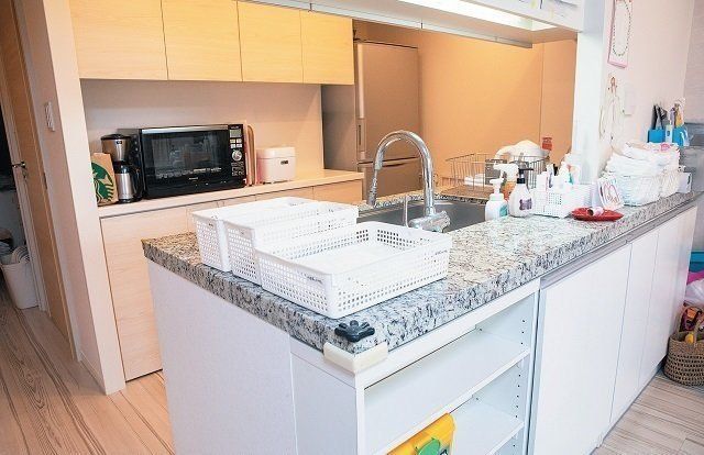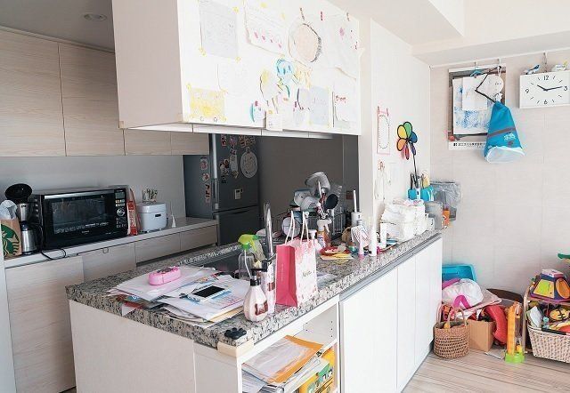 カウンターにいろいろ「仮置き」しているつもりが、「万年仮置き状態」になっていた登さん。つまり、そこが便利な場所だということ。忙しい時期はムリして片づけようと頑張らず、いっそのこと置いちゃうもんだと割り切りましょう。