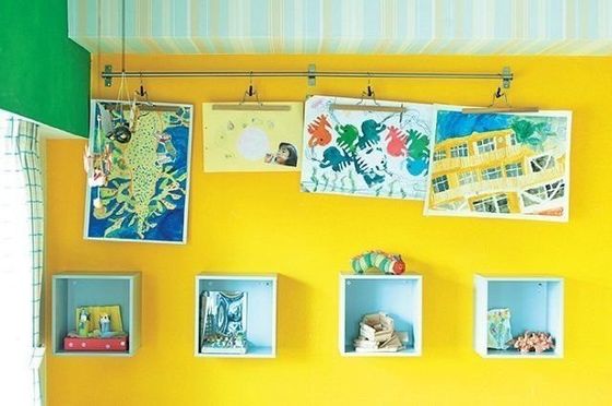 新しい作品が来たらまずはリビングに飾り、その後子ども部屋の専用コーナーへ移動。その作品を今後も取っておくかどうかは、その都度子どもと話し合って決めると◎。
