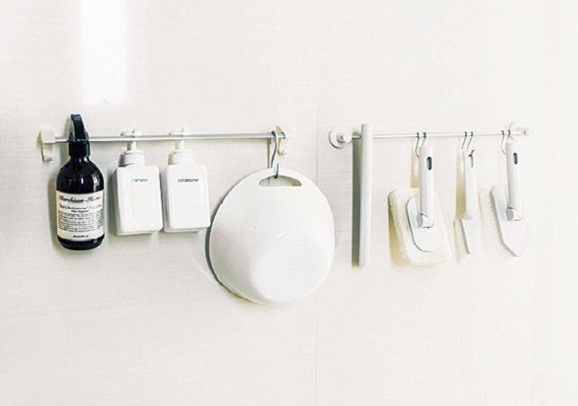 カビが気になる浴室も、引っ掛け収納なら、ヌメリ知らずで管理がラクに。掃除道具を浴室内に常備すれば、入浴中、気になる所をサッとキレイにできますよ。