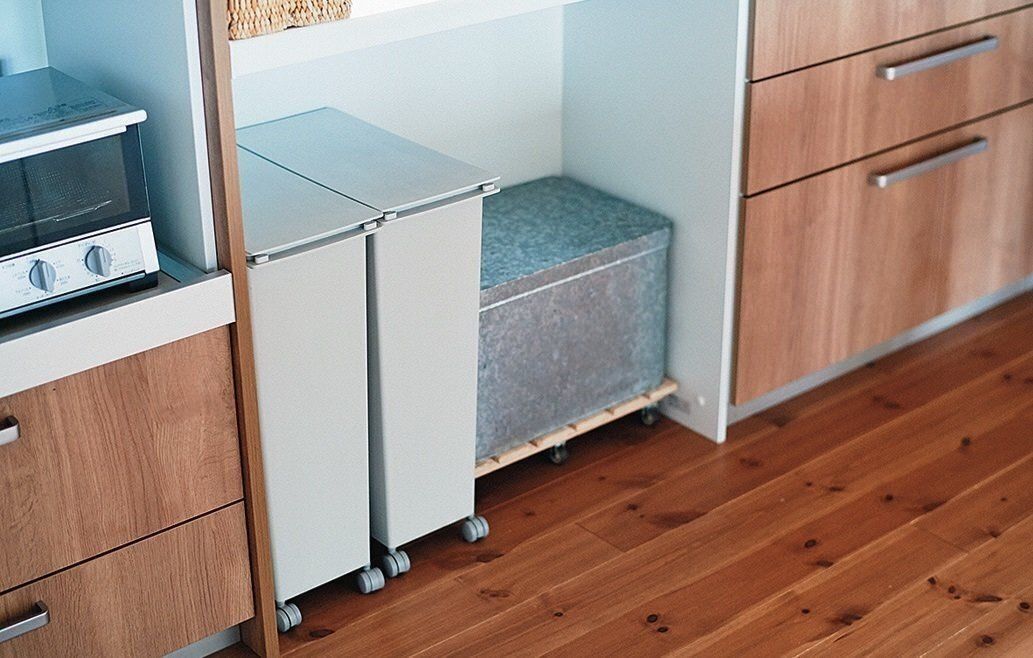 地味に面倒な家中のゴミ箱からのゴミ回収。可燃用と不燃用それぞれ1つずつにしたら、手間が激減。ゴミ箱から離れた場所で過ごすときは、手もとにポリ袋を用意。