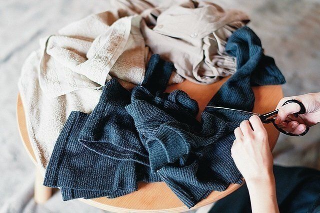 使用後のぞうきんは、洗うのが面倒だし干しておく場所が意外とないもの。小さくカットした古着や古タオルをウエスにして、使ったらポイッと捨てるようにしました。