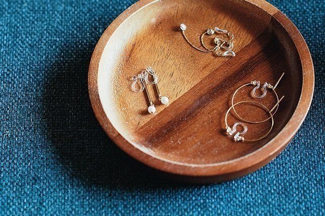 「その日の服がスポーティー系でもエレガント系でも、どれかは合う」と、ピアスは3つだけにして洗面台のトレーに。迷う時間が減って、身支度の時短に。
