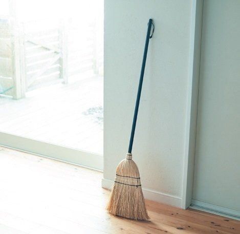 「重い掃除機をやめてほうきに換えたら、コードをセットする手間が省け、気軽に掃除ができるようになりました」。ほうきは出しっ放しにしておけば、いつでもすぐ手に取れ、掃除がで