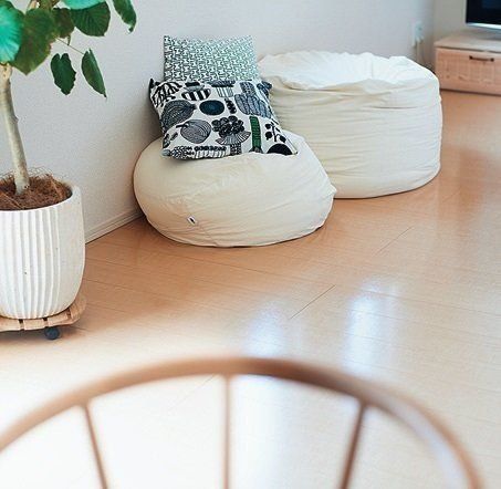 以前はたくさんの物に囲まれて暮らしていたというmikiさん。片づけるのがおっくうだから、掃除がつい後回しになり、汚れをため込むせいで、1回の掃除にとても時間がかかっていました。そこで、長男の出産を機に断捨離®を決行。必要だと思い込んでいた物を思い切って手放してみることに。「汚れがたまりがちなソファやベッドをなくしたら、掃除がラクに。管理が面倒なトイレマットやトイレブラシをやめたら、ストレスも軽減。手間をかけずにキレイが続くようになりました」