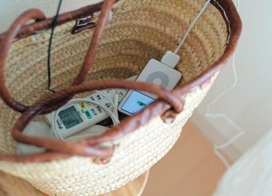 充電も音楽を聴くときも、機器類はかごの中にざっくり入れるだけ。