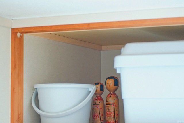 用途のないびんやかご。でも、自分にとって心が落ち着く物だから、飾っておきたい。押し入れ上段の余白は心地よさのために欠かせないそう。